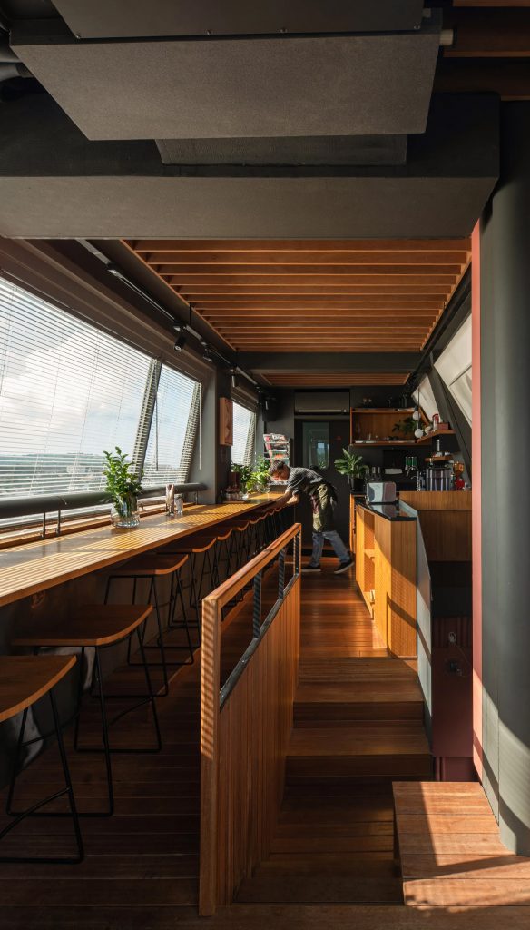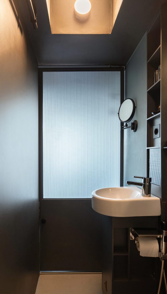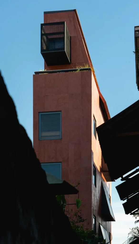 - Proprietarii hotelului au dorit să transforme lipsa de spațiu într-un punct forte, transformându-l într-un hotel skinny unic.
