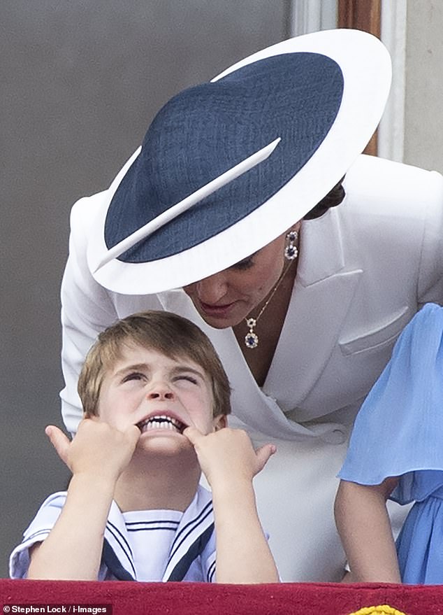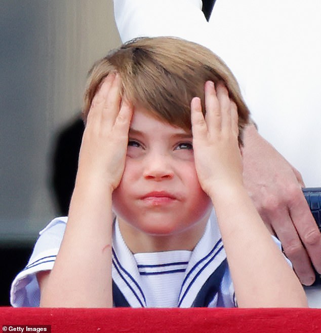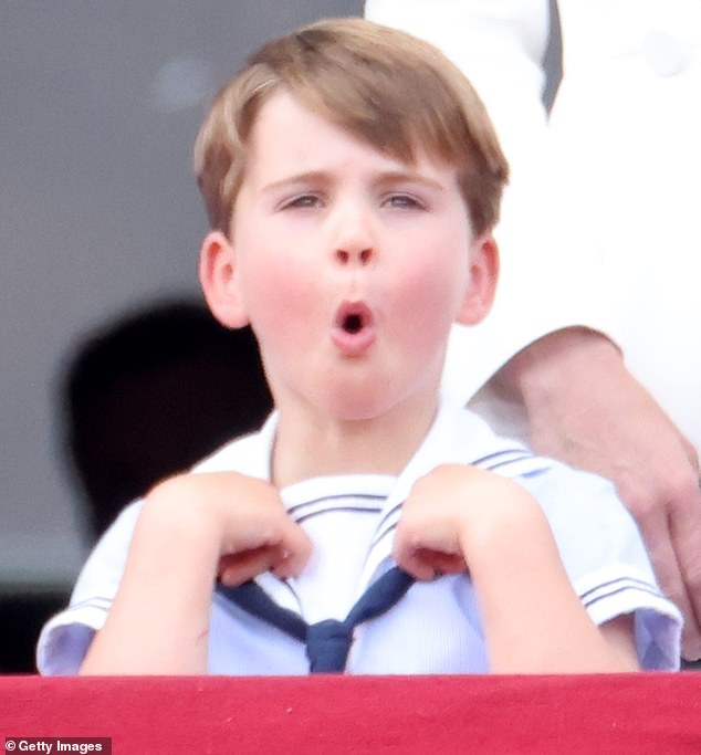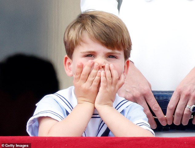 Prințul Louis a făcut spectacol la festivitățile Trooping the Colour din iunie anul trecut, unde a făcut o serie de gesturi amuzante – inclusiv acoperindu-și urechile în fața reginei când sunetul motoarelor de avion a devenit prea puternic în timpul defilării.